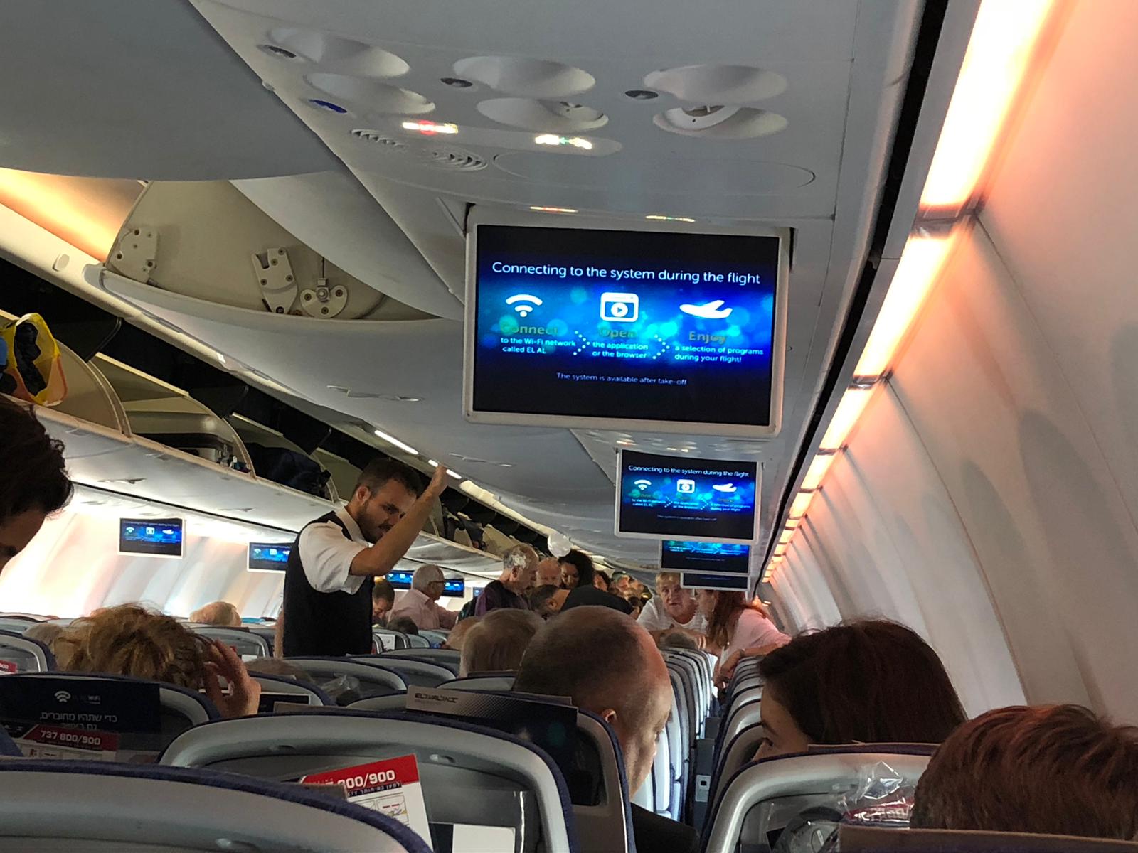 Meteen werd ik in de slang naar het vliegtuig al aangesproken over het maken van foto’s. Ik moest de gemaakte foto onmiddellijk verwijderen, maar zoals Els ook al doorhad, dat ging ik niet doen. Nog niet aangekomen in Israël en nu al illegaal bezig.